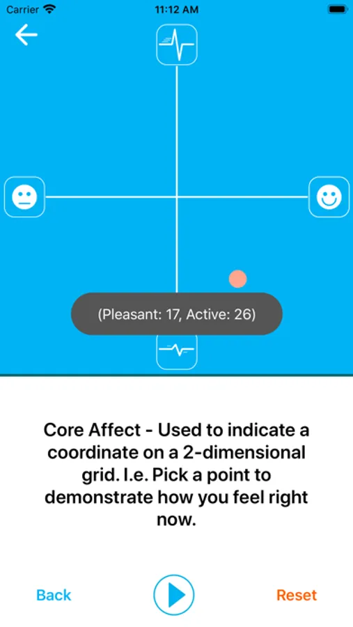 - 2 Dimensional Grid - The user selects a point to indicate their feeling in 2 separate dimensions (i.e. Affect vs. Activity)