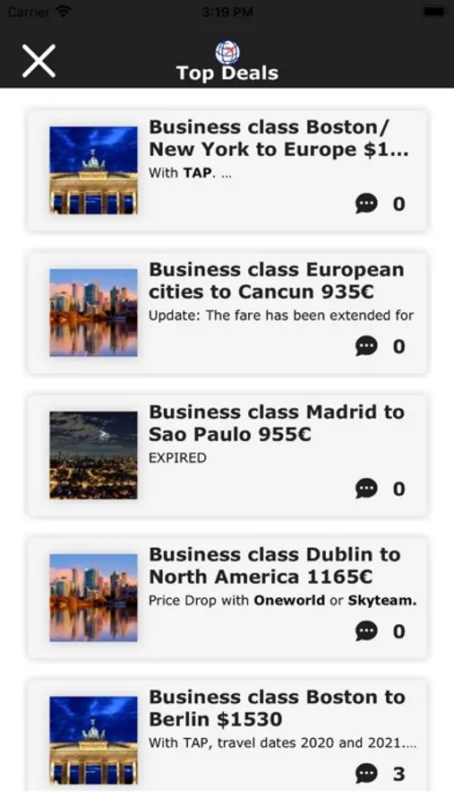 - every day new Business or First Class Deals