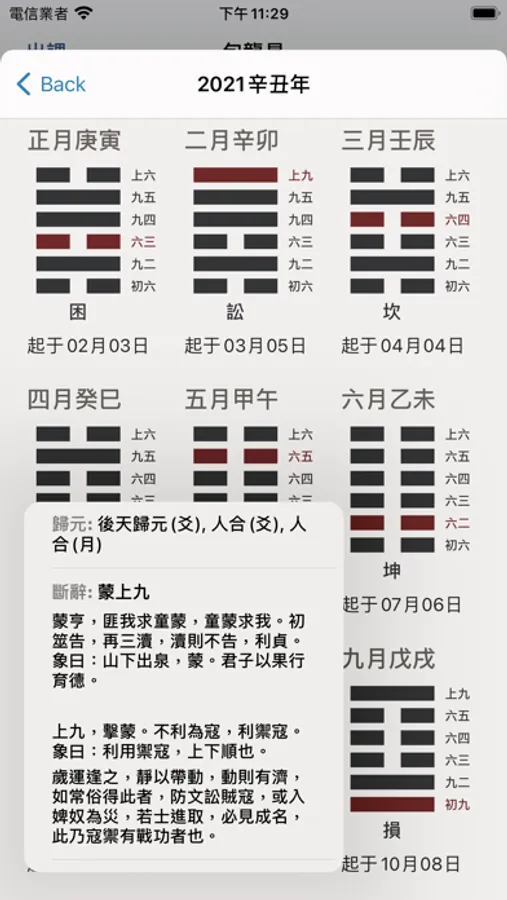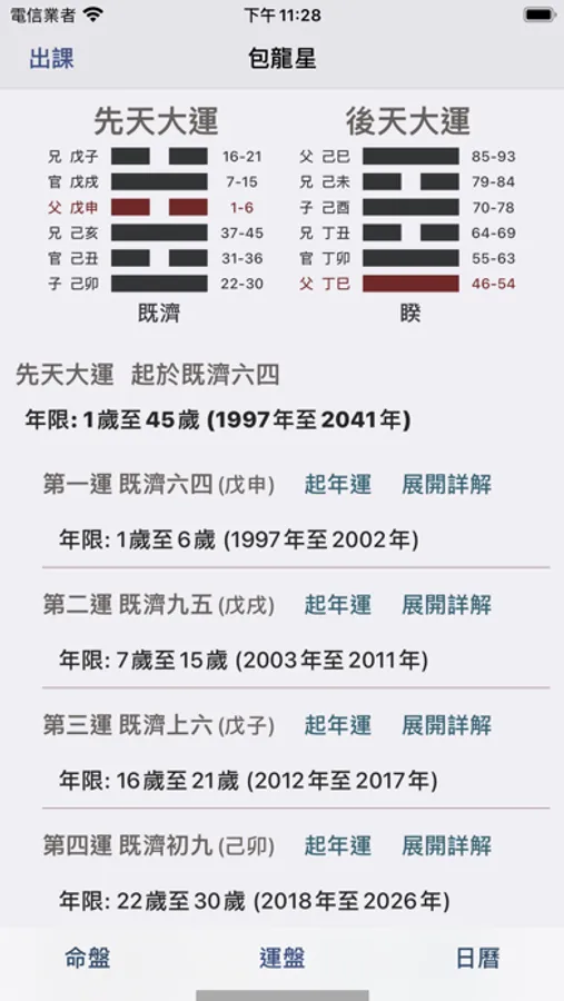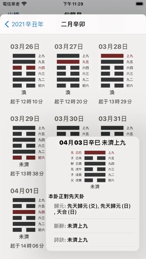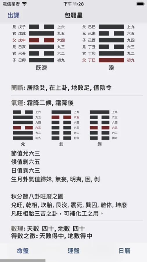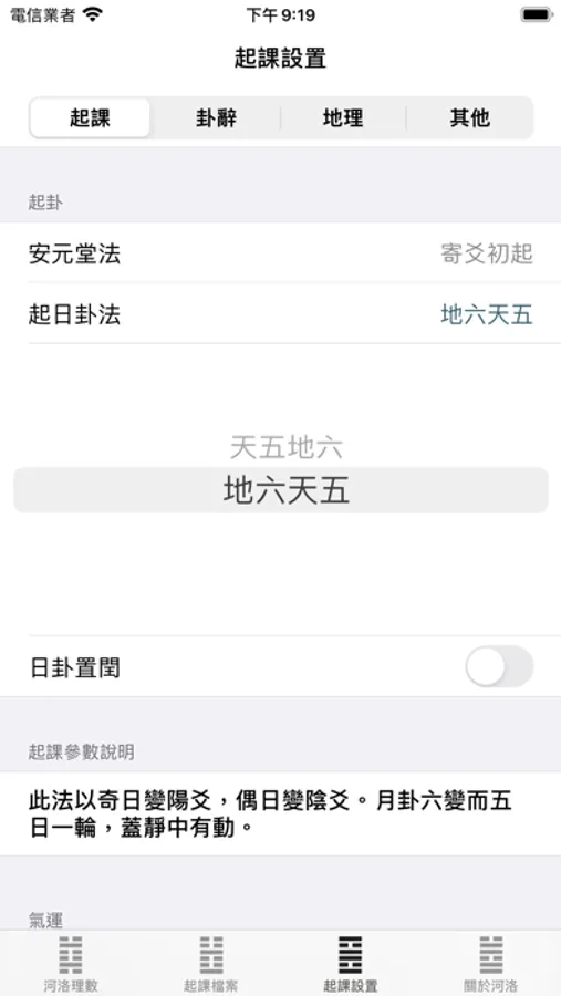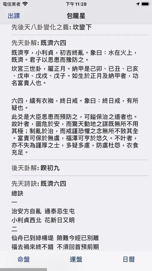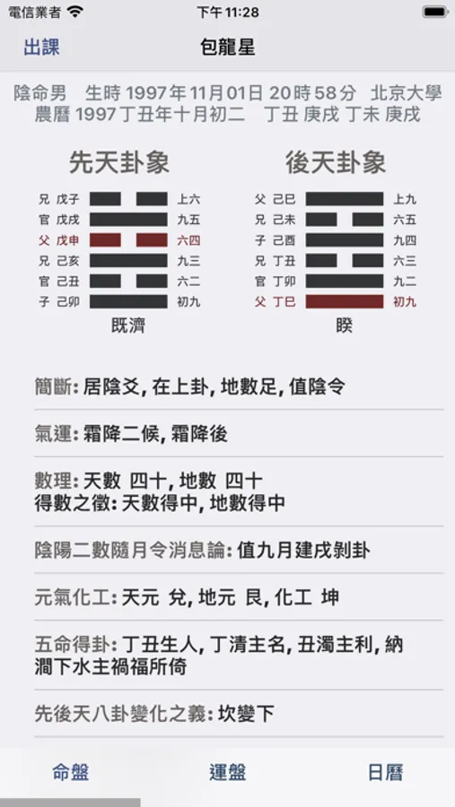 故今將河洛之法制成掌中之軟件,生時生地一定,便可起卦,而先天後天,大運流年,以及月日之卦象皆可方便觀之。而古之卦辭,或與人之命運不甚相合,因此將自為其觀象得辭,漸次更新,使人觀辭便可解象,縱然不通卦象之人,也能因卦而知所當行之事,當明之理,人生正途,不過如此。