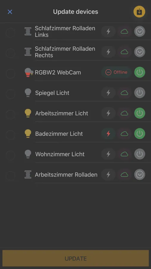 Updates can be easily distributed to the Shelly devices via smartphone. For this, they don't even need an internet connection.