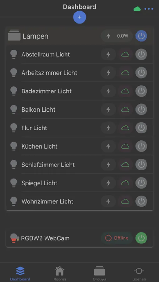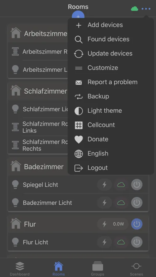 The application can connect to the Shelly Cloud via a Shelly user account. All existing functions, however, can also be used completely without an internet connection.