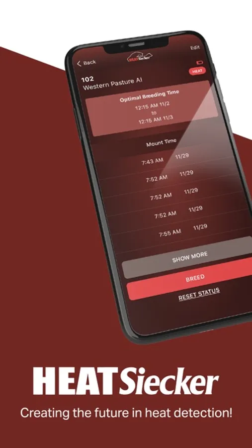 The purpose of the HeatSiecker mobile app is to work with the HeatSiecker patch. The app connects with the patch on your cows, providing you with current mounting activity.