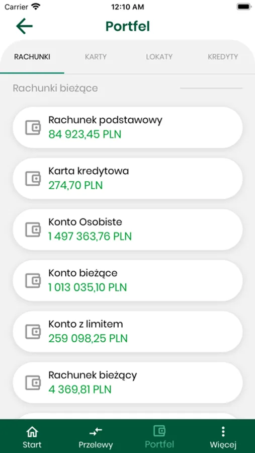 - prezentowanie rachunków, kart, lokat i kredytów klienta,
