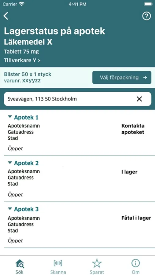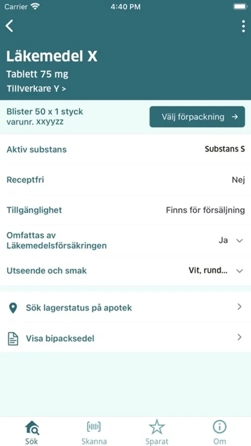 Via Fass app för allmänheten hittar du läkemedelsinformation och kan söka efter vilka apotek som har ditt läkemedel i lager. Du hittar ditt läkemedel i appen genom att antingen skriva in läkemedelsnamn, substansnamn eller skanna den 2D-kod alternativt streckkod som finns på din läkemedelsförpackning. I Fass app finns läkemedel godkända i Sverige.
