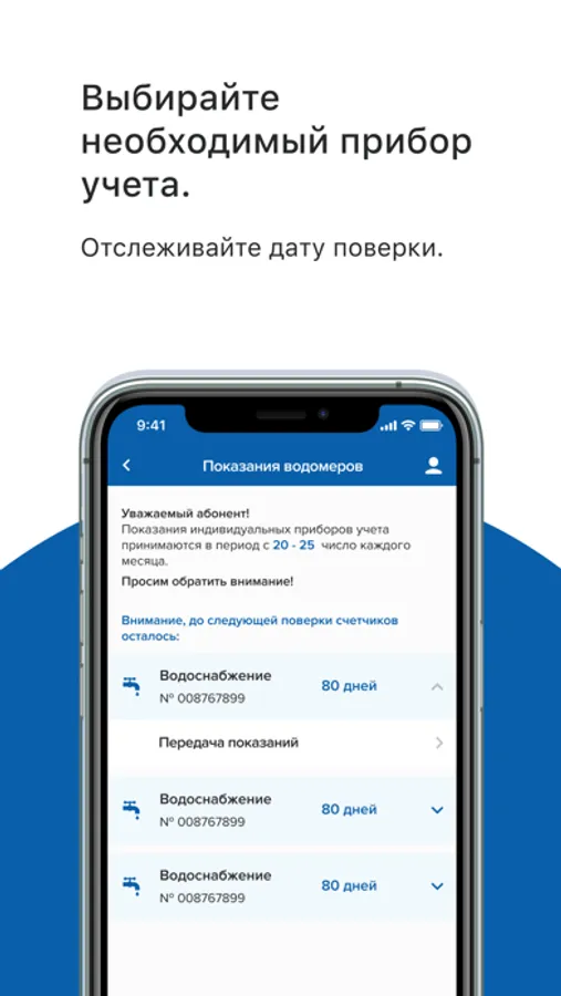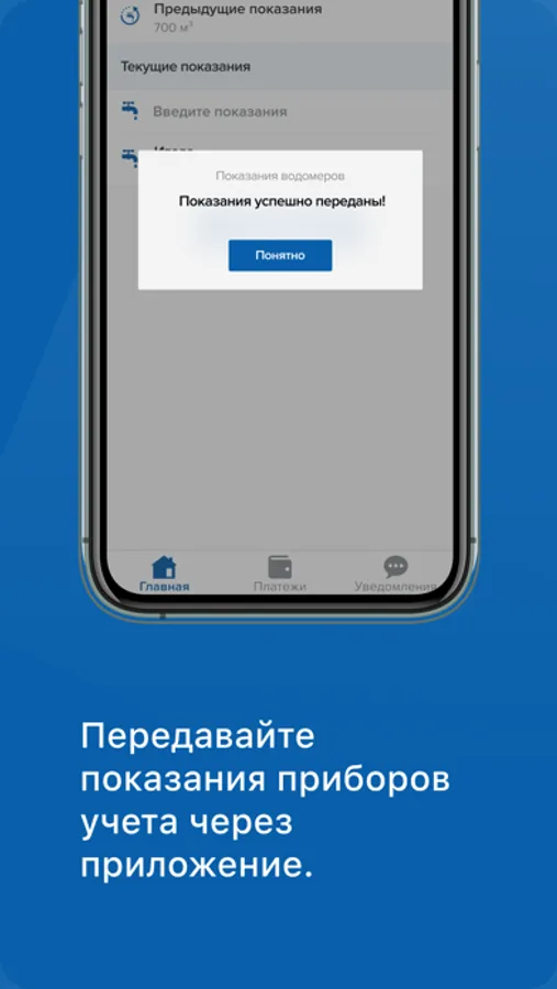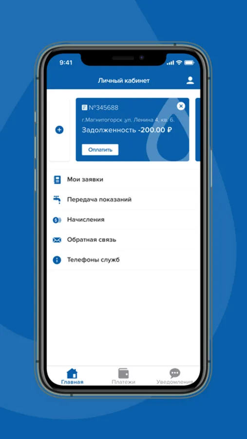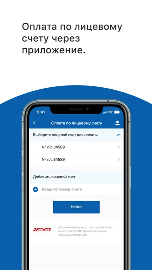 Мобильное приложение позволяет абонентам узнавать информацию о состоянии привязанных лицевых счетов, производить оплату, передавать показания приборов учета.