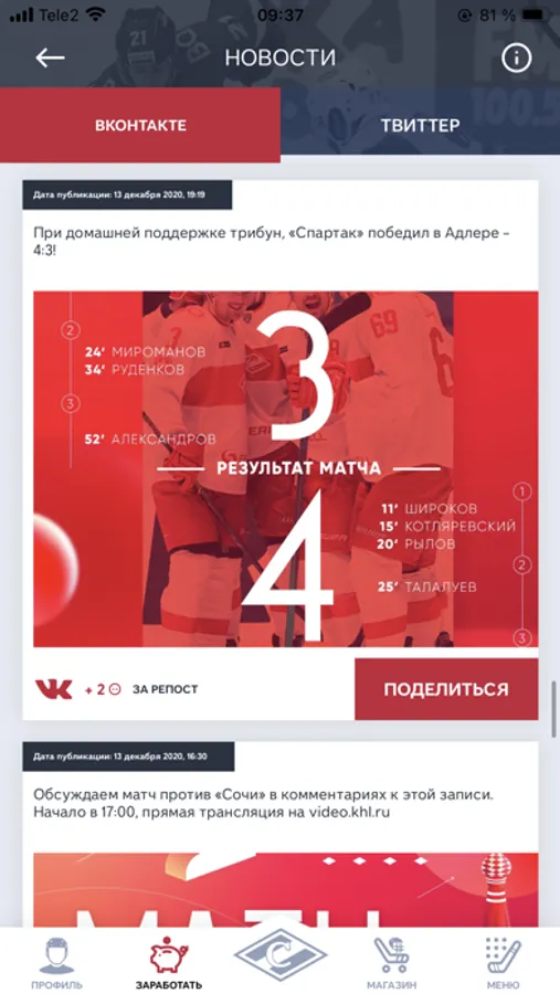 Приложение ХК «СПАРТАК» создано специально для всех болельщиков красно-белых. Здесь каждый может соревноваться с другими участниками, зарабатывая в течение сезона баллы (пятаки) за свои действия, а по итогам лидеры рейтинга получат уникальную возможность выиграть главные призы.