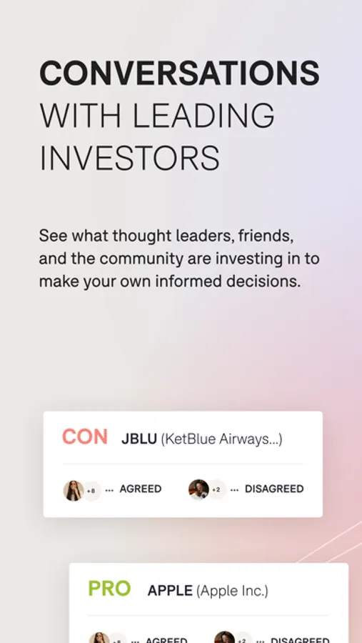 By using this app you agree to our Terms of Service (tornado.com/tos), Privacy Policy (tornado.com/privacy_policy), and Rewards Program Rules (nvstr.com/referral_rules). Nvstr Financial LLC is a wholly owned subsidiary of Nvstr Technologies Inc. The contents of this app are not investment advice. Brokerage services are offered by Nvstr Financial LLC. IMPORTANT: The projections or other information generated by investment analysis tools regarding the likelihood of various investment outcomes are hypothetical in nature, do not reflect actual investment results and are not guarantees of future results. Investment analysis tool output, Community Thought Leader content, and Thought Leader ideas are not recommendations and should not be construed as such. Nvstr Financial LLC does not endorse Thought Leaders, Community Thought Leaders, their content, or their positions in any way. A Thought Leader or Community Thought Leader's investment approach may be very different from yours, and their positions may not be appropriate for you. Thought Leader ideas are sourced from public information regarding a firm's recent positions. Please refer to the Terms of Service for more information. Investing in stocks is inherently risky; using margin may increase these risks.