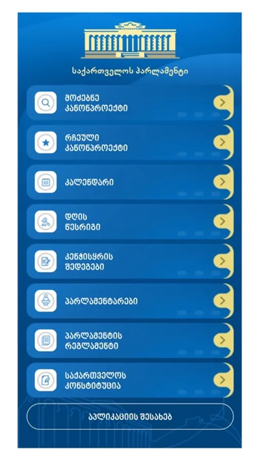 An app Geo Parliament is created to the order of the Parliament of Georgia, it represents fully updated version of previous application, which