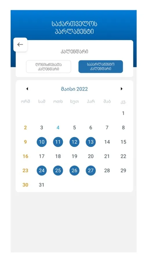 Information on parliamentary activities is in your pocket, just one click away – Geo Parliament is Georgia’s first mobile app that enables you to track all legislative activities carried out by the Parliament of Georgia. It is a one-stop parliamentary information centre that among others, contains the following features: