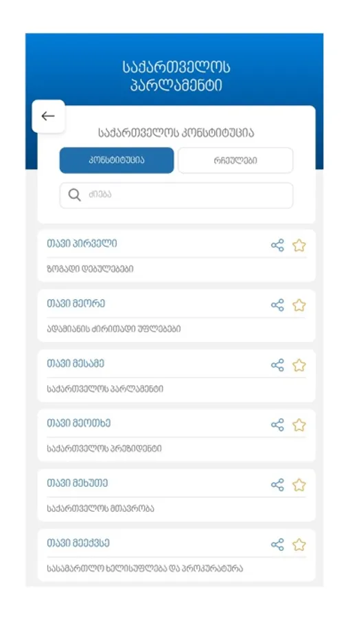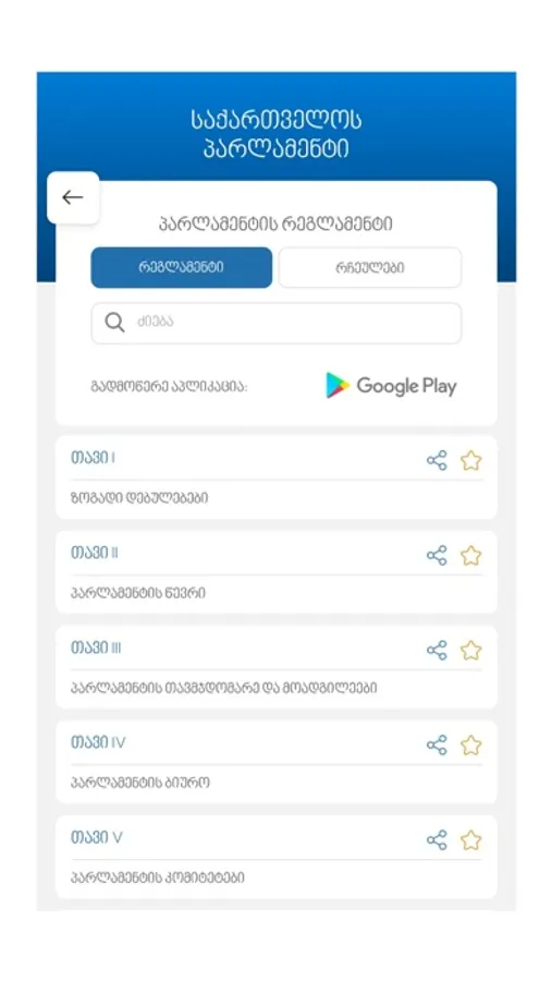 • “Rules of Procedure of the Parliament of Georgia” provides full text of the Rules of Procedure of the Parliament of Georgia with table of contents which sorts by chapter.