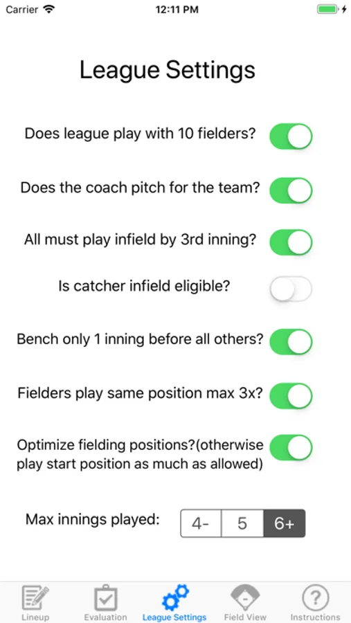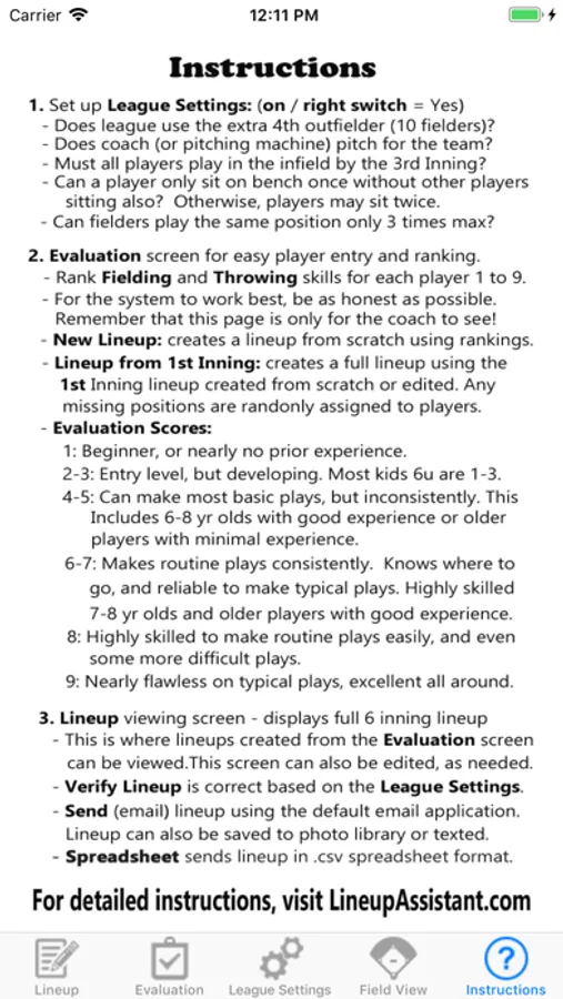 With Lineup Assistant you can easily and quickly enter player's information and skill level, along with the various rules set up by your league, and the app will help create an optimized yet conforming lineup. Easily and quickly edit the lineup to make small coaching adjustments and you're ready to play ball!