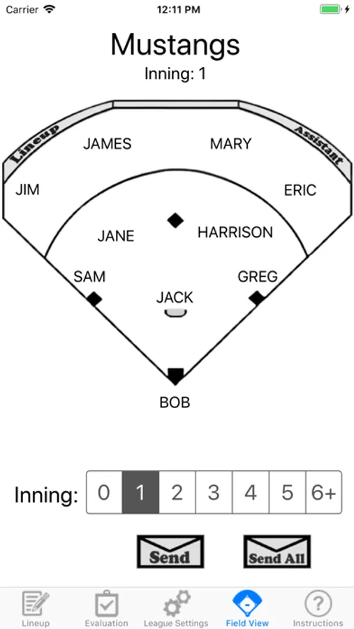 The app can also create a random lineup, or complete a lineup using just the first inning positions as a guide. Or you can create a lineup from scratch and LineupAssistant will check to make sure your lineup conforms to league settings. With one click, you can text or email the complete lineup to other coaches or parents. Also print the handy inning by inning position charts to help inexperienced players know exactly where to go on the field each inning. Save all your information with multiple teams and simply delete or add new players to make things even easier for the next game!