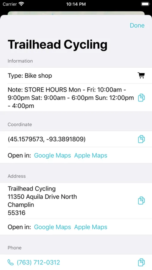 BikeFix is the easiest way to find nearby bicycle repair stations and shops when you're on the trail! BikeFix taps into OpenStreetMap data for repair stations and shops anywhere in the world, and provides you with information including precise location, notes, phone, website. Plus, you can even open any bike station or shop directly in Apple Maps or Google Maps!