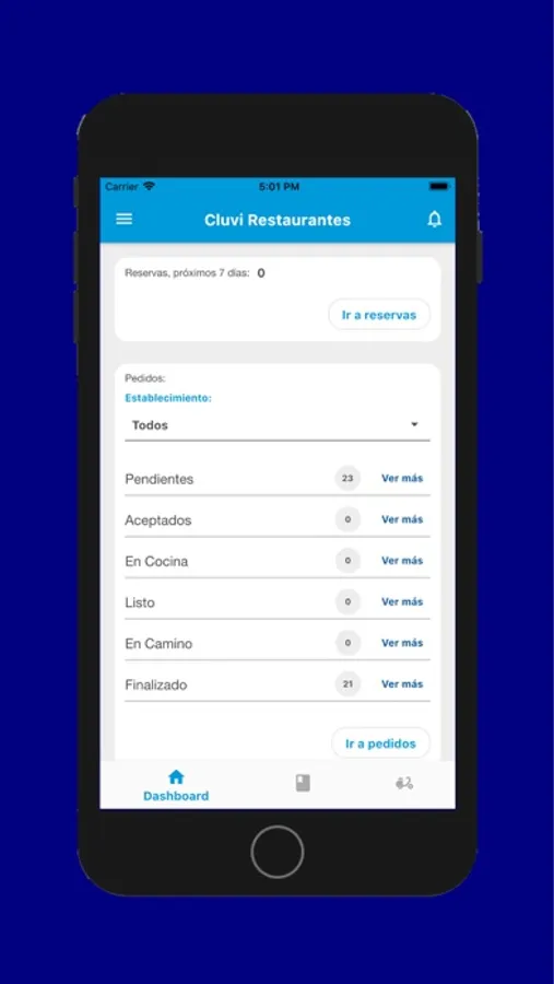 Aplicación enfocada a complementar la web del administrador Cluvi para restaurantes, permitiendo estar al tanto de notificaciones de pedidos y un mejor control de sus reservas y pedidos.