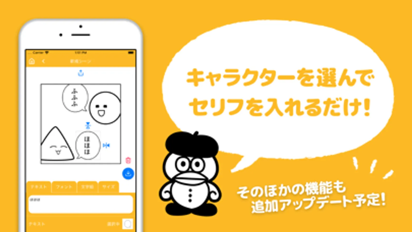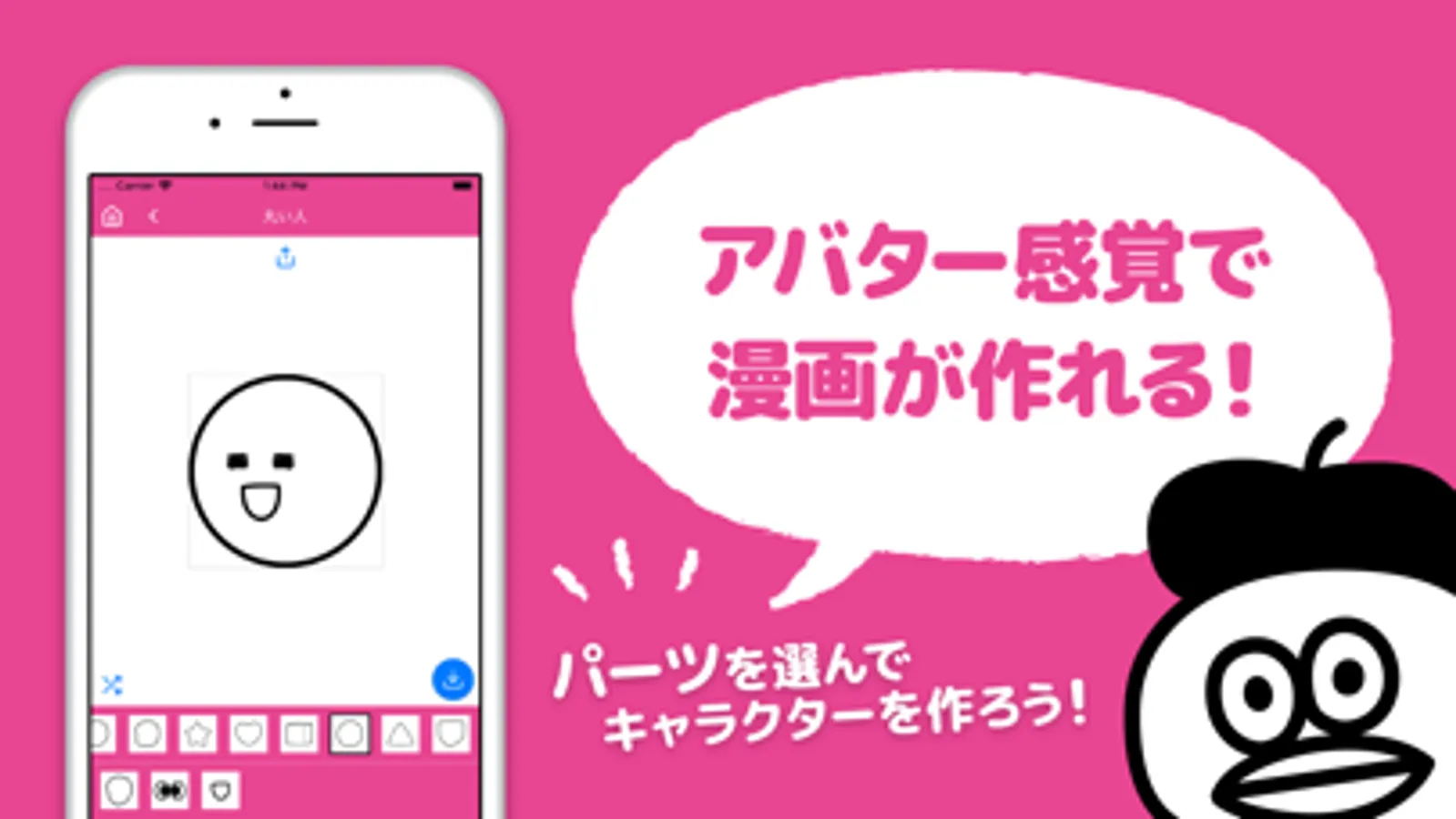 アバターのようにパーツを組み合わせてキャラクターを作成し、ふきだしを付ければ、誰でも簡単に漫画を作る事ができます。