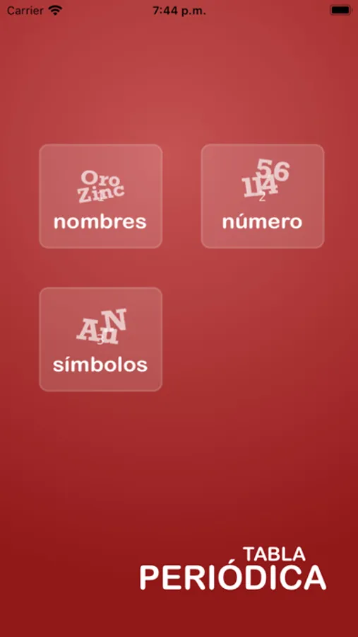 La app genera preguntas aleatorias en base a los nombres, símbolos y números atómicos de los elementos.