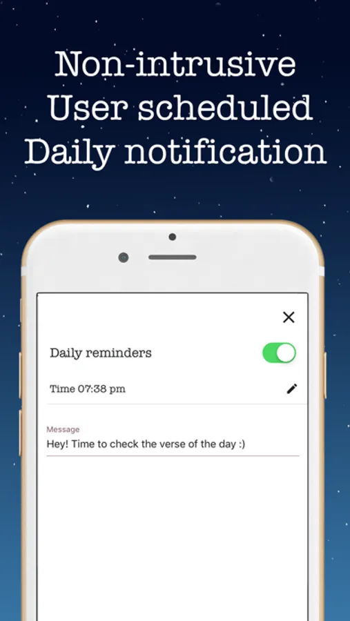 • Non-intrusive, user scheduled, daily notification of your scripture