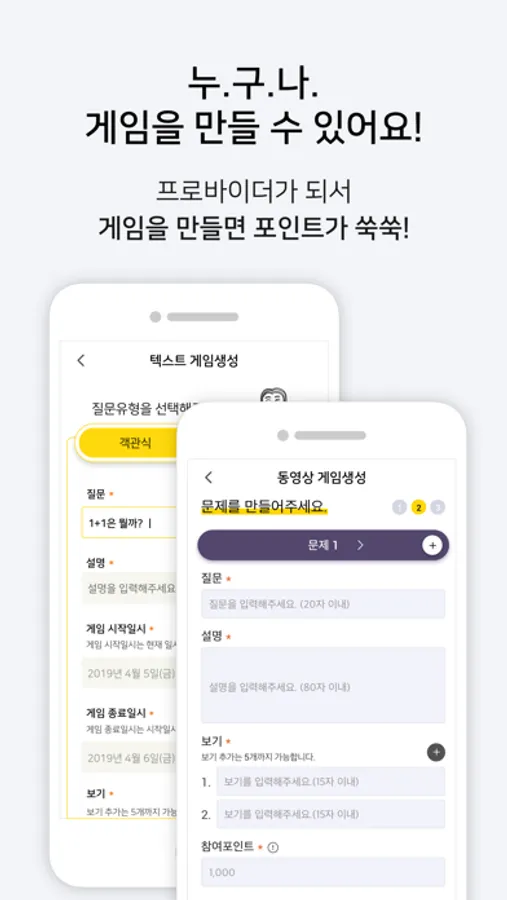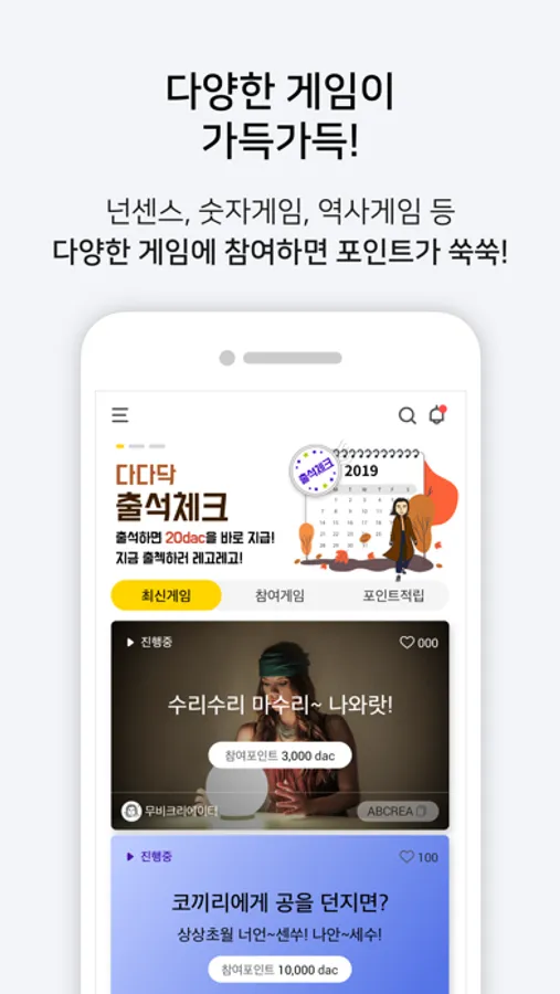 세상에 단 하나뿐인 게임! 게임을 통한 재미! 재미와 함께 포인트를 적립하는 즐거움!