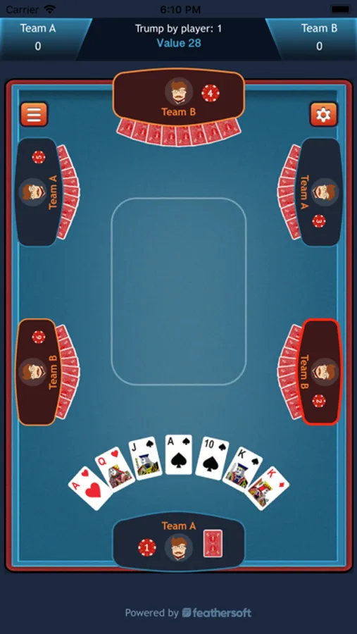 56 card game comes with awesome visuals and sound effect which is something of a standard for games coming from the Feathersoft stables. Game developers at Feathersoft has ensured not just a smooth gameplay but also successfully brought in the right ambience with the gaming table and color scheme which is evocative of poker tables and casinos with the right sound effect to compete the portrayal.