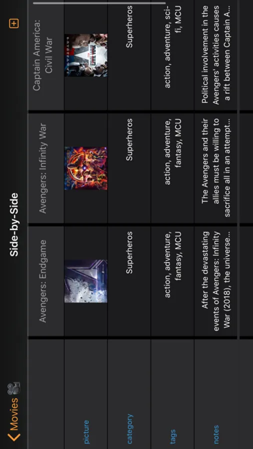 • Side-by-Side: Compare Cards easily by displaying in columns.
