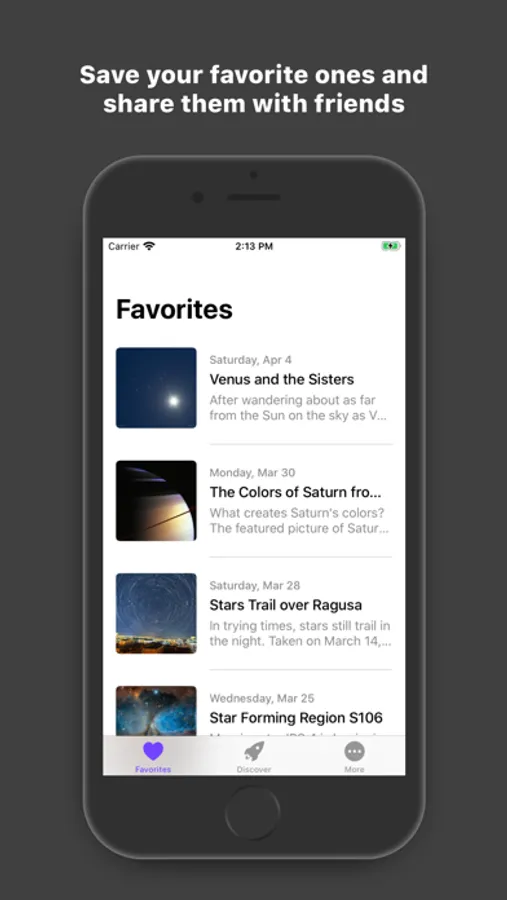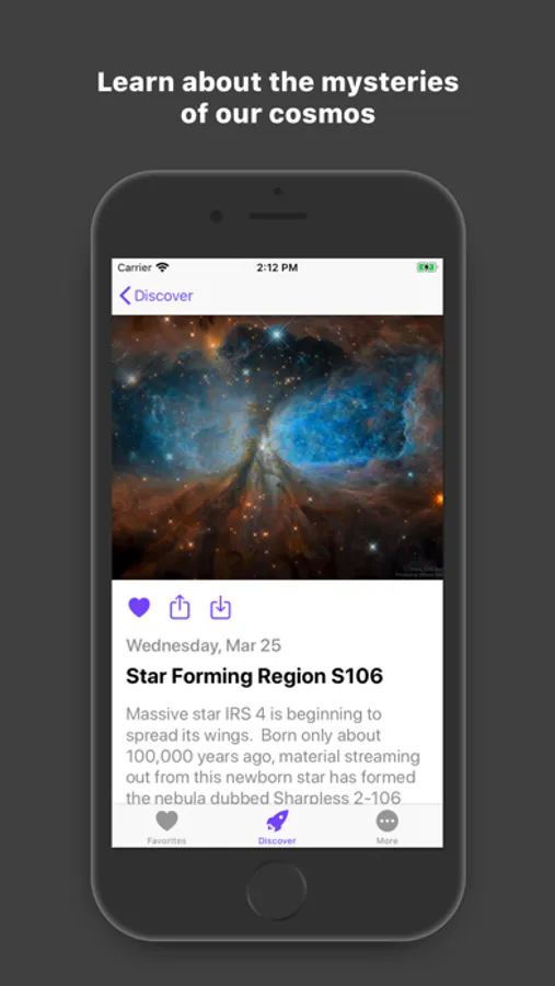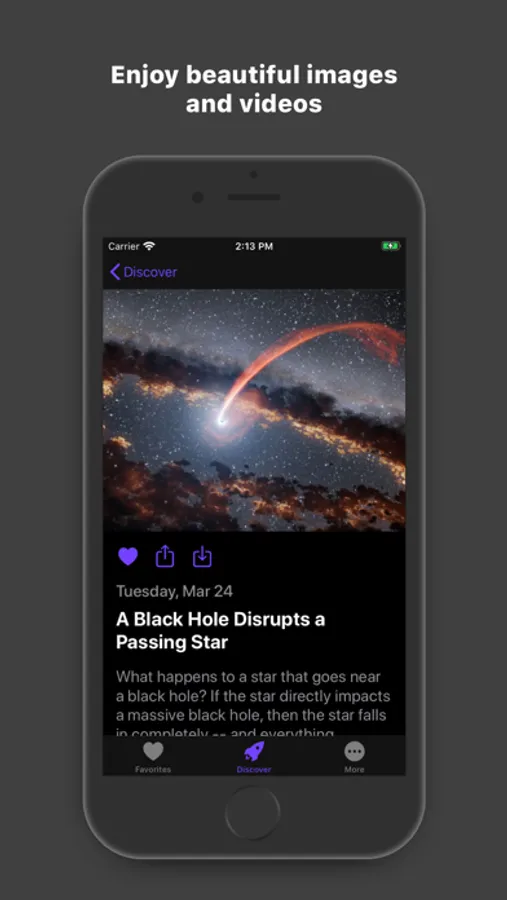 Unfortunately, few of us have time to contemplate our universe. So this app brings the universe down to you one picture or video at the time. So that while you wait for your morning coffee, your bus, or your friend who is always late, Cosmos: Discover Our Universe will show it to you.