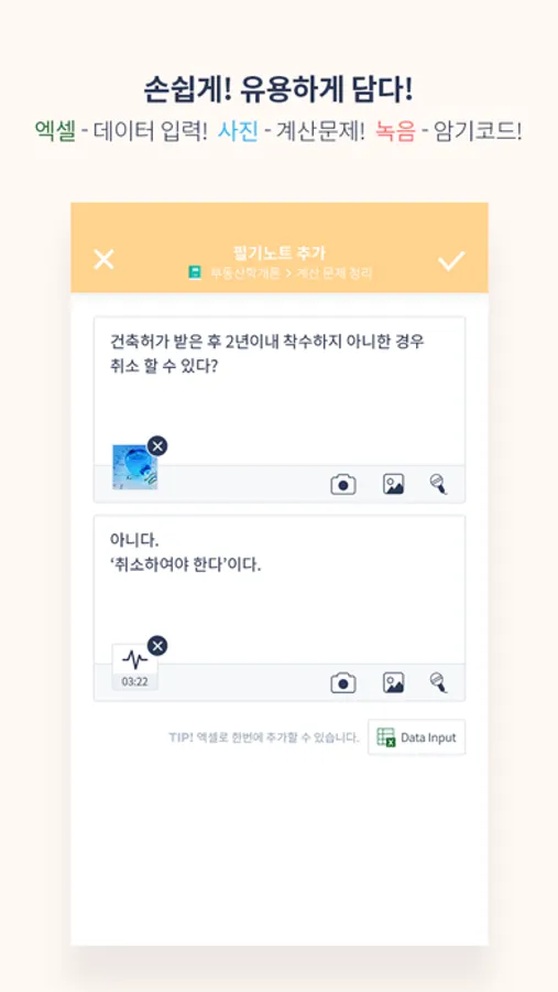 ㆍ계산문제의 수식이 필요한 것은 사진으로, 선생님의 앞글자 따는 암기코드는 녹음으로!