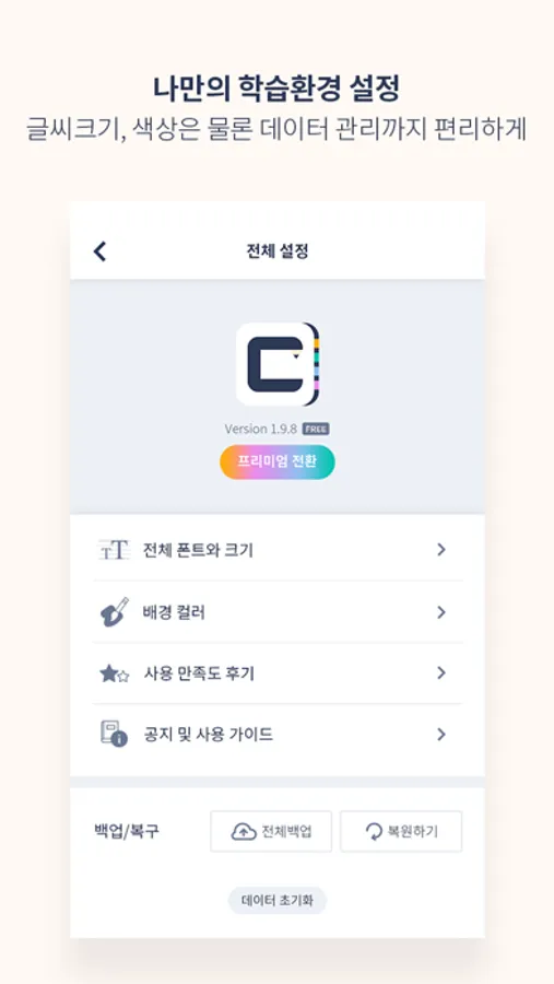 ㆍ공부에 꼭 필요하지 않은 기능들은 되도록 배제!