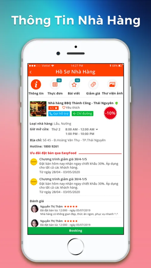 Download Grabooking and find information regarding food, drinks, location, and get up to 70% discount when you book from Grabooking. With Grabooking you can review food, the restaurant service, get coupons and book a table quickly within seconds. Our artificial intelligence driven smart search, and voice recognition allows you to search for any individual food, food category, restaurant name, or discounts within seconds!