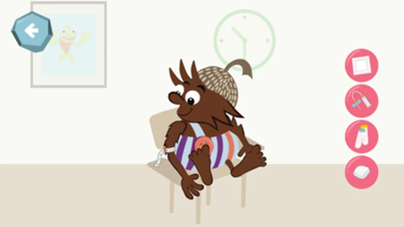 Med denne app kan børn, på egen hånd eller sammen med deres forældre, lege sig til en forståelse af, hvad der sker før, under og efter blodprøveproceduren, og barnet kan lære at mestre teknikker, der kan afstresse eller aflede det under selve prøvetagningen. Det gør app’en ved 1) at forklare processen i små, overskuelige trin og 2) at præsentere barnet for mestringsstrategier, eksempelvis en vejrtrækningsøvelse, som kan afprøves i app´en.