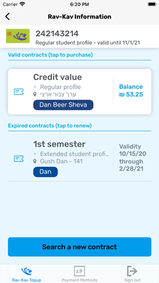 Contracts sold on this app are valid for your rides on Trains in Israel and in the following bus service operators: Dan, Egged, Metropoline, Kavim, Superbus, Afikim and more