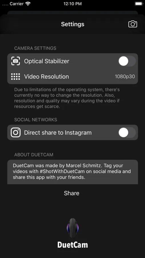 With DuetCam and the release of the newest operating system from Apple, iOS 13, you'll be able to record videos using two cameras at the same time and save it to the device, share it online or even upload it directly to Instagram Stories.
