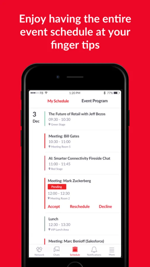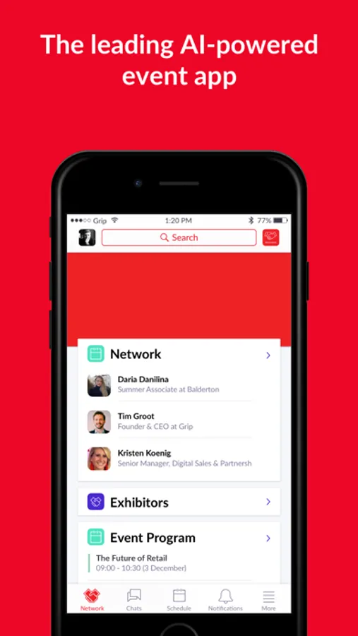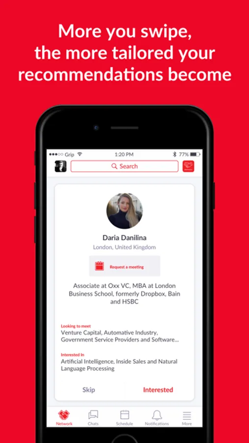 The self-learning matchmaking app selects the most relevant participants for you in order to start networking, arrange appointments and get to know trade fair participants. Every time you use the app, your contact recommendations will get more and more precise because of our self-learning system.