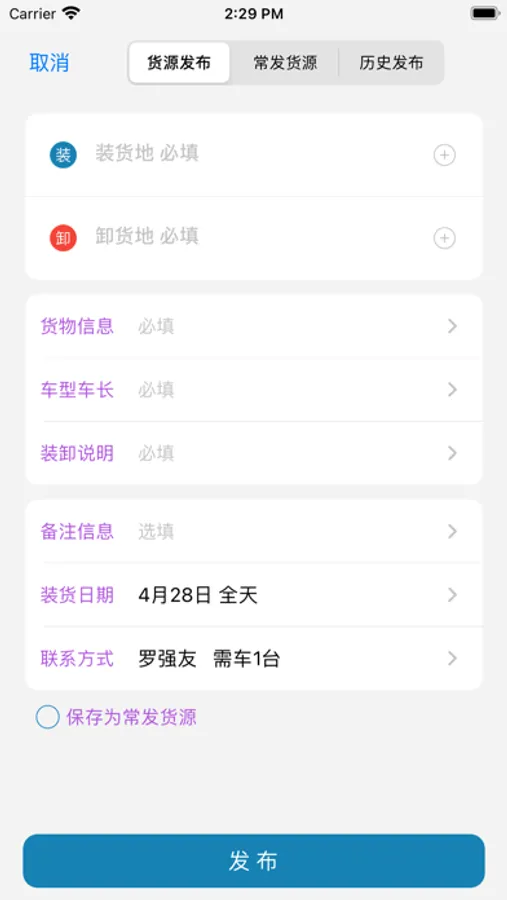 驾驶员找货、货主发布货源找车,两方通过APP取得联系方式,在线下通过电话详细约通过,在APP上完成订单确认,得以保障双方的权益。
