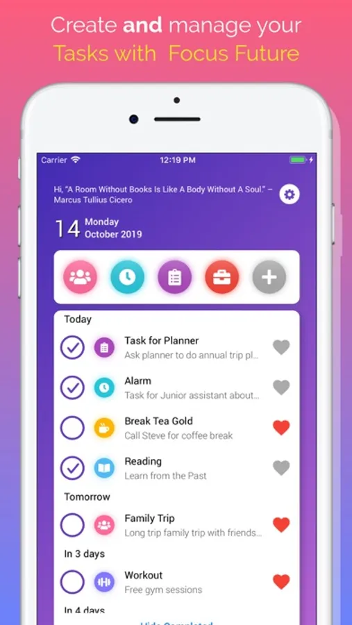 Stay organized and manage your day-to-day with Focus Future To-Do. Make shopping lists or task lists, take notes, add Calendar and more to improve your productivity and focus on what matters.