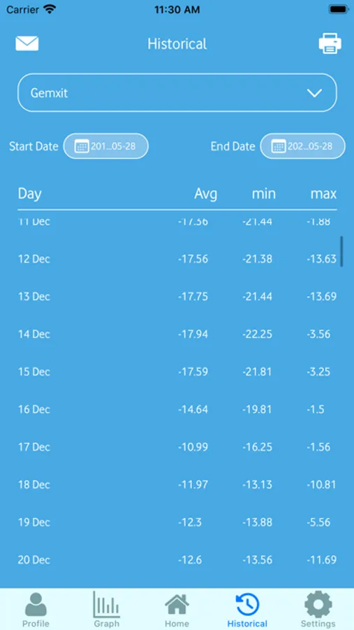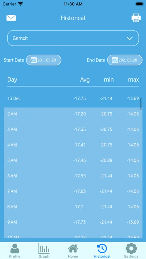 Temperature sensitive facilities such as cold storages always need constant checks on their temperature. So we have created an application that will constantly collect temperature related feeds with the help of digital temperature sensors that are connected to a minicomputer device that keeps on pushing the records to our cloud server. From the server, we distribute the records in the form or graphical and other reports to authorised mobiles and computer systems. the app users can read live data, print and email historical date, receive SMS and email alerts when the temperature is out of the pre set ranges that are set by the user.