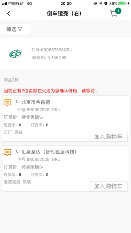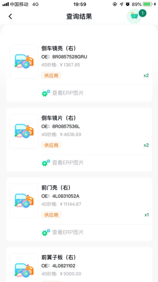 (1)车型件&事故车两个查询模式,满足不同业务场景的采购需求