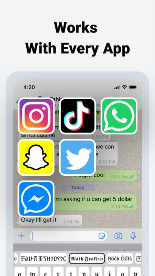 No need to copy and paste cool text from another fonts app. Fire Fonts allows you to directly write in stylish fonts from your keyboard in any app. You can easily switch between different font styles from the same keyboard.