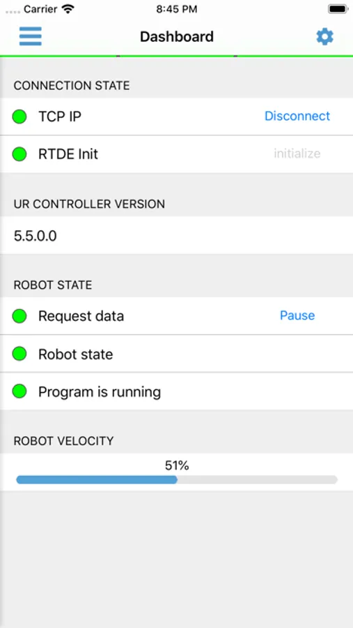 With the UR Monitor you are able to observe your Universal Robot. UR Monitor is working with the URSim and a real Robot. UR Monitor is not a remote controller.