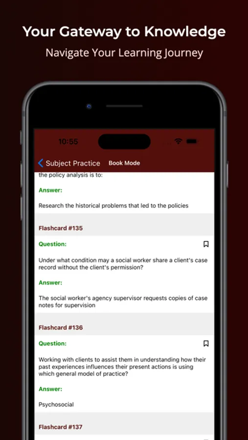 Our app strive to value your memories, your skills, test your understanding, extend your reasoning and summaries your thoughts or apply the new information in Social Work.