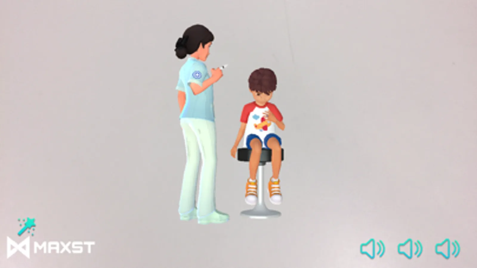 2. 우측 하단의 캐릭터 출현 버튼을 눌러서 3D 캐릭터를 출현 시킵니다.(인터넷 연결이 필요합니다.)