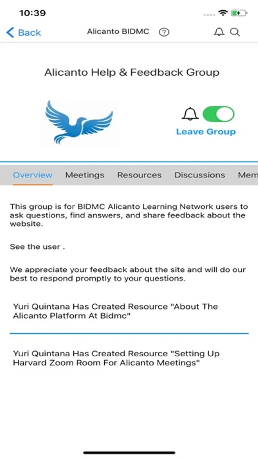 Alicanto Mobile App gives users the ability to access content and group communication tools on Alicanto websites. The app allows users to see their group's documents, join group meetings, participate in group discussions, and connect to other users.