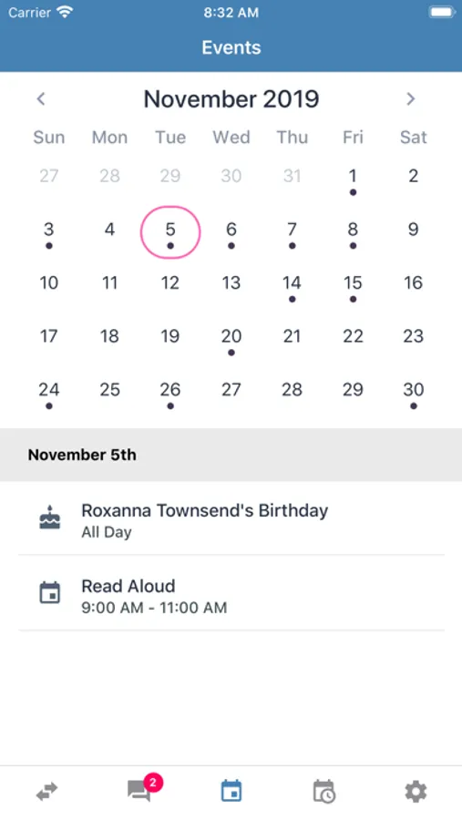 • EVENTS CALENDAR: Keeps you informed about birthdays and plans taking place at your center.
