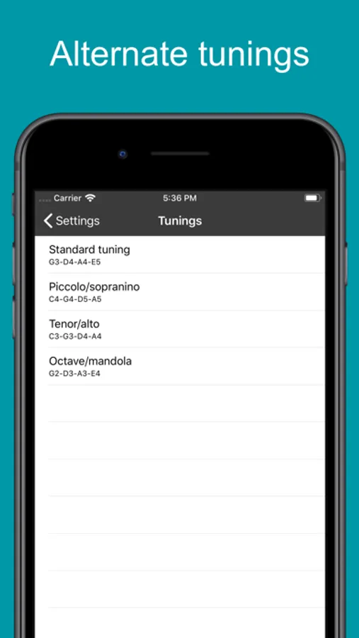 Alternate mandolin tunings (Piccolo/sopranino, Tenor/alto, Octave/mandola).