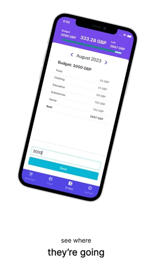 Expense types - You're the boss of your spending with 12 preset categories, all aligned with the advice of a financial whiz!