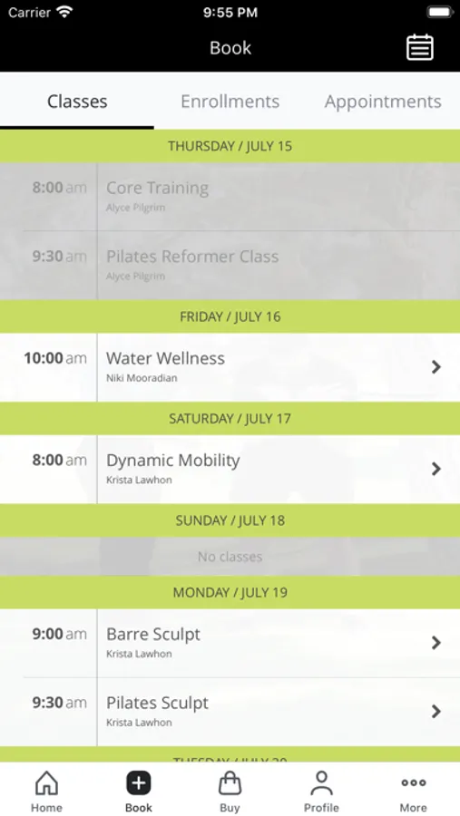 From this mobile App you can view and book available appointments, class schedules, ongoing promotions, and specialty events, as well as view the club’s location and contact information.