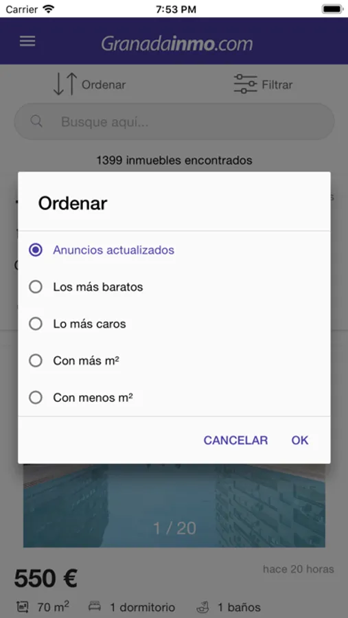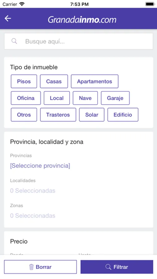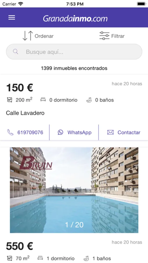 Esta aplicación permite buscar inmuebles en la provincia de Granada y filtrar según sus necesidades. Podrá compartir la información por los medios sociales, contactar con las agencias de forma directa, etc. Además incluye un sistema privado para la gestión de las propias agencias donde recibirá alertas de demandas de clientes. También podrá consultar sus inmuebles publicados desde la aplicación, alertas y sus demandas.