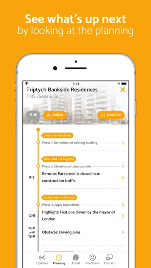 With SitePodium you can add construction and infrastructure projects to your favorites. This allows you to follow these projects without having to launch the App every time. You will receive a notification with every new update. This way you will be the first to know about the latest developments.
