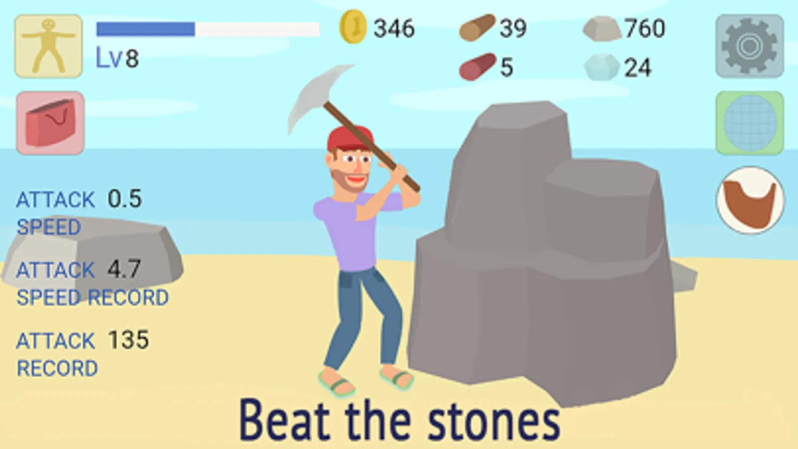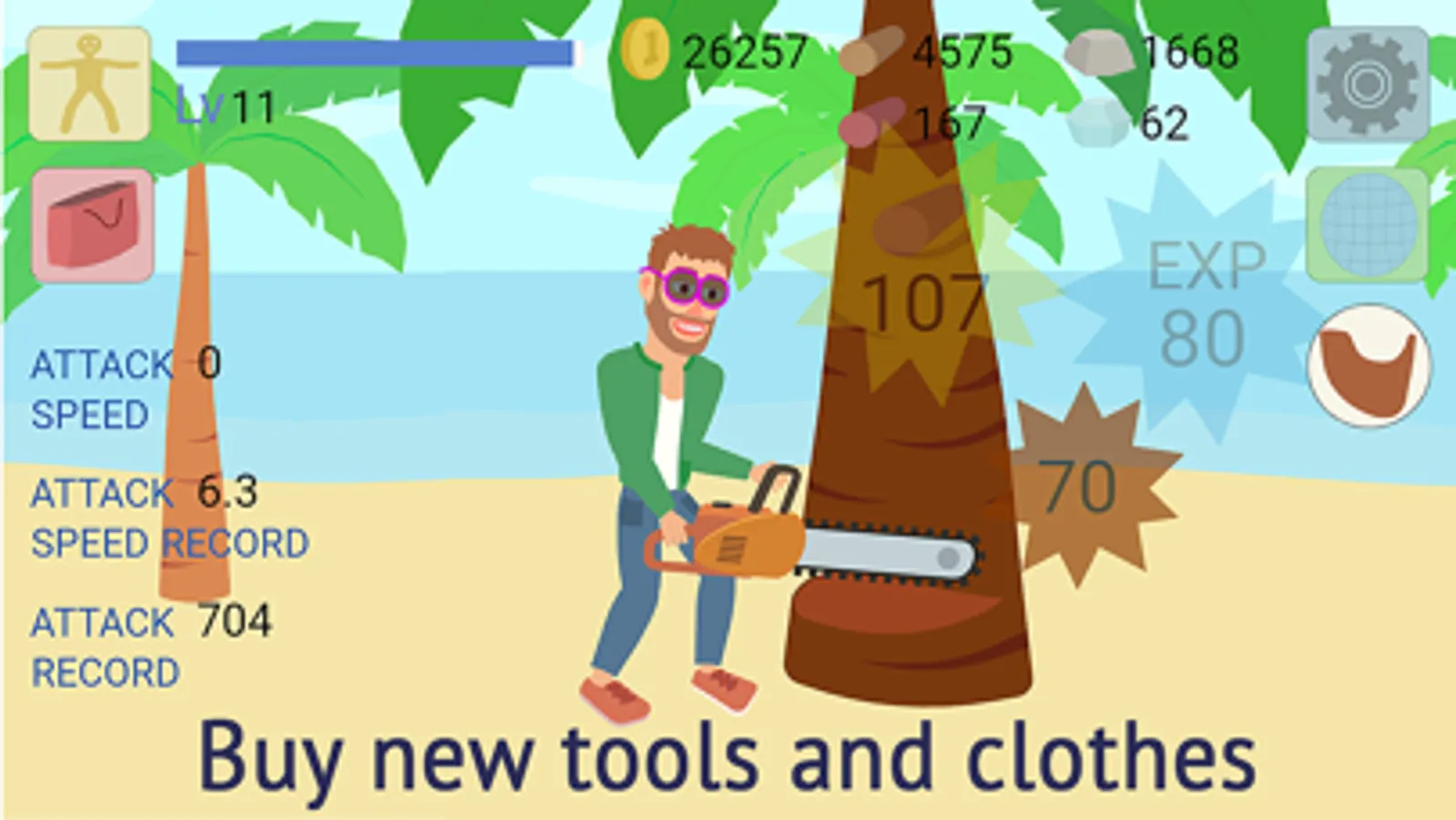 As you tap on the screen, you'll chop down trees, crush stones, and earn resources to buy new tools like axes, pickaxes, hammers, and chainsaws.