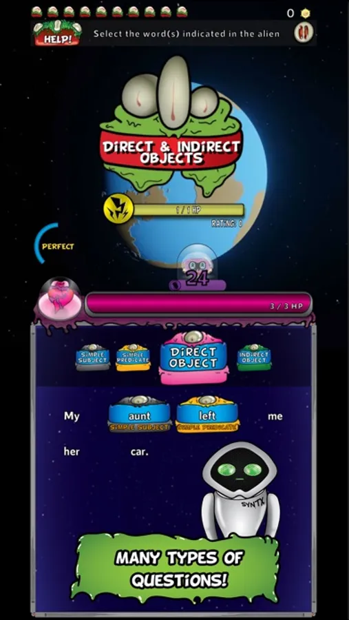 GramMars Wars is the game to learn English grammar. Use a team of monsters to fight the evil aliens using grammar. It features incredible graphics and animations in a space theme. It contains over 100 different types of quizzes. The app will track your progress and adapt to your level.