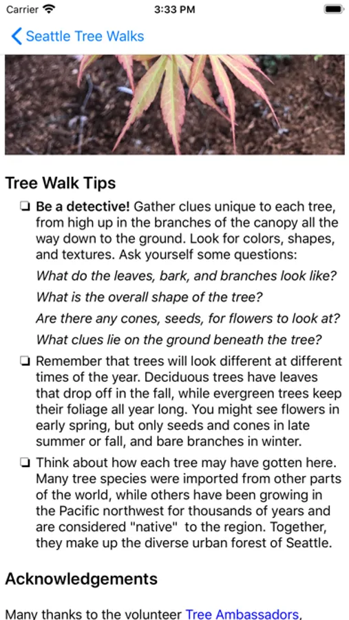 In celebration of the 50th anniversary of Earth Day, Trees for Seattle launches our new Tree Walk mobile app! Now you can explore Seattle’s urban forest from the safety of your living room or while on your own neighborhood stroll. This is an opportunity to learn more about the trees that make Seattle’s urban forest both unique and important with our self-guided, easy to use, mobile app. Whether you’re a budding botanist or simply interested in how Seattle’s trees contribute to a safer, healthier, more vibrant city, you’ll find an engaging Tree Walk to explore at your own convenience.